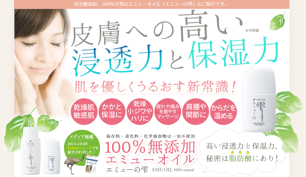 エミューの雫の最大の特徴は、「肌へのなじみやすさ」です。
